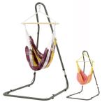 ハンモックチェア サイズ:W115×D115×H212cm 素材:スチール(粉体塗装)天然木コットンポリエステル 組立家具 送料無料(北海道・沖縄・離島は別途送料がかかります) ※商品は玄関先渡しとなりますので、お客様での搬入・開梱・設置になります。 ※WEB画面では実際の色を忠実に再現できないため、色は少々異なることがございます。