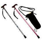 訳有の内容 説明書が同封されていません 上記内容を確認した上でお買い求めいただけますようお願いします。 敬老の日の贈り物にはもちろん、誕生日プレゼント、また快気祝い、など、ちょっとした気遣いの贈り物にいかがでしょうか。 ゴム式の五段折りたたみで、収納も楽々カバンに収納。 ご使用の際はゴムの力であっという間に組立。 石段、ステップや階段の前でもあわてずサッとご使用いただけます。 ステッキ 体に合わせて長さを調整できます。 適応身長/約140cm〜175cm 使用時の全長/約75〜85cm 重量/約270g ステッキカラー/ピンク、紺花柄 長さスライド式5段階調整 品質/ ○グリップ/木製 ○シャフト/アルミニウム ○ストラップ/ポリエステル100% ○つえ先/ゴム ■SGマーク付き商品 ■化粧箱入り ショルダーバッグ付 ※小さくたたむときは、ストラップをずらして、二回巻きにすると簡単です。