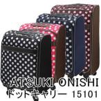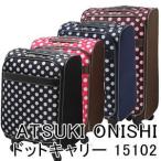 ドット模様が可愛らしいソフトキャリーケースです。 4輪キャスターで小回りがきくので、どんな場所でもスムーズに移動する事が出来ます。 使いやすい縦開きタイプ。 品番:15101 外寸(約):縦41×横30×厚さ20 cm 総外寸(約):縦48×横32×厚さ23 cm 重量(約):2.6 kg 容量(約):20リットル 素材:ポリエステル、合成皮革 ※こちらの商品は 取寄せ商品です。 営業日(土日祝以外)の11時までのご注文で1〜2営業日後の発送。 ※振込でのお支払いは、ご入金確認後となります。 ※土日祝はお休みです。 ※閲覧環境などにより、実物とカラーの見え方が異なる場合がございます。