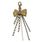 クロネコDM便で(送料無料)アンティークゴールドカラーのぷっくりしたリボンが愛らしいバッグチャーム!さらに落ち着いた色味のチェーンやラインストーンのフリンジが付いています。 着脱が簡単なカニカン金具なので、その日の気分に合わせてお気に入りのバッグやポーチに付けてアレンジを楽しんで♪ サイズ:全長17cm×幅6cm×厚み1.5cm 重さ:32g この商品はクロネコDM便でお届けするため、支払い方法に代金引換は承れません。 また日時指定もお受けできません。 線径が3mm以上のパーツには取り付けられません。 ※姉妹店と同一在庫を共有しているため、ご注文完了後に品切れとなる事がございます。 沖縄・離島は別途送料がかかります。