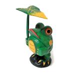 葉っぱの傘を差したな可愛らしいカエル君。 やっぱり葉っぱの傘が一番似合います。 『チョコン』と座ったカエル君の顔の笑顔は、 手描きなので微妙に一つ一つ違います。 素朴さと手作り感がなんともいえないカエル君です☆ ■サイズ:高さ約24cm(傘含む)正面横約10cm奥行き約8cm ※手作りのため、商品により多少大きさ・色合いが異なります。 予めご了承下さいませ。