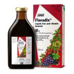 「フローラディクス 500ml」は、鉄分をバランスよく摂れるドイツ生まれの健康飲料です。 消化によい各種ハーブのエキスとフルーティな果汁をベースにし、乳酸鉄、チアミン、リボフラビン、ピリドキシンといったビタミンB群を含み、吸収されやすい形に仕上げました。 天然果汁がベースなので、どなたにも好まれる風味になっています |