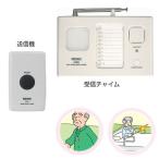 ■サイズ/送信機:4.6×7.4×2.3cm、受信機:12.7×7.5×4.3cm ■重さ/送信機:39g(電池を含む)、受信機:144g(電池を含まない) ■周波数/315MHz帯特定小電力無線局 ■受信チャンネル/ID方式256通り ■電源/送信機:ボタン型リチウム電池CR2032×2個(付属)、受信機:DC4.5V 単2形アルカリ電池×3本(別売)又はACアダプター(付属) ■セット内容/押しボタン送信機×2台、10ch受信チャイム×1台、受信機用 AC アダプター×1個 ・ご自宅でも簡単に取付ができる便利な呼び出しチャイムです。 ・押しボタン送信機2台入りのセット。 増設も可能です。 ・小型・軽量なので携帯にも便利(吊り下げひもはついておりません)。 ・屋外見通し距離約100m(屋内見通しは約50m)。 ・10種類の異なるチャイム音と該当番号のLED表示で識別できます。 ・音と光で呼び出しできます(音のみ、または光のみでも呼び出し可)。 ・受信機は電池でも使用できるので持ち運びも可能。 ・送信機は防沫型なのでお風呂場の壁面に取付けることも可能です。