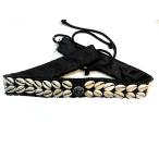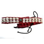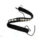 インド製のタカラガイとターコイズ風エスニックベルト、一面に、黒には黒のビーズ、赤には赤いビーズが縫い付けてあります。 裏地はコットン素材のぬのです、1年中使えます。 幅約4cm 本体長さ68cm+ヒモ長さ29cm+29cm 厚さセンター15mm以外1cm 発送2日〜5日 送料¥500 素材コットン/タカラガイ/ビーズ |