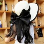 大きなリボンが可愛い折りたためるツバ広帽です58-60cm |