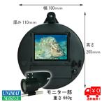 ■水中の様子をモニターを通して観察が出来る、水中カメラとモニター接続用ボックスのセットです。 ■カメラ本体は1.8kgの重量が有りますので、ケーブルを手繰りながら見たい場所まで水中に沈めて行きます。 レンズは水平方向に向いており、対象方向にハロゲン20wの明かりを照射する事が出来ますので、光の届きにくい場所での使用にも対応しています。 標準ケーブルで水深30mまで対応しています。 ■モニター接続ボックスには、モニター用と録画用の2系統の出力端子と、ライトのオンオフボタン、本体電源ボタンが装備されています。 ■こんな場合に... 海中の様子・魚の種類などがわかります。 /レジャー(バスフィッシング)等で海底の状態及び魚等を直視できます。 /船舶のプロペラ及び舵等、上架せずに確認できます。 /ダイバー等の状況が船上で確認できます。 /水中での作業への利用ができます。 /海底生物の生育管理及び採取等の検査への利用ができます。 /海底付着物や、貝等を直視できます。 /オートアイリス付なので、薄暗いところで人の目より少々明るく見えます。 ■別途モニターが必要です。