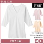 ■サイズ S M Lサイズ ■素材 綿100% ■仕様 袖丈:7分袖 ネック:V首 グンゼの肌着研究所、快適工房では、人間の生理面や心理面での研究を重ね、着用時のストレスが少なくリラックス度が高い快適工房を開発しました。 良質綿を使用し、綿素材ご愛用者から絶大な人気を誇るロングセラーブランドが快適工房です。 気持ちいいの理由 やわらかな風合いが長持ちするグンゼやわらかい ゆったりしている 良質綿で汗をよく吸う 抗菌防臭加工で清潔快適工房は、洗濯を重ねても生地の劣化が少なく、いつまでもソフトな風合いを保ちます。 だから気持ち良さが長続きするのです。 また、アンダーウェアの定番素材として使われることが多いフライス素材は、やわらかく肌ざわりの良い着心地です。 ※ライトピンクはM・L・LLサイズのみ。 Sと3Lの展開はございません。 こちらの商品はゆったりめの設計でおつくりしております。