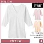 ■サイズ LLサイズ ■素材 綿100% ■仕様 袖丈:7分袖 ネック:V首 グンゼの肌着研究所、快適工房では、人間の生理面や心理面での研究を重ね、着用時のストレスが少なくリラックス度が高い快適工房を開発しました。 良質綿を使用し、綿素材ご愛用者から絶大な人気を誇るロングセラーブランドが快適工房です。 気持ちいいの理由 やわらかな風合いが長持ちするグンゼやわらかい ゆったりしている 良質綿で汗をよく吸う 抗菌防臭加工で清潔快適工房は、洗濯を重ねても生地の劣化が少なく、いつまでもソフトな風合いを保ちます。 だから気持ち良さが長続きするのです。 また、アンダーウェアの定番素材として使われることが多いフライス素材は、やわらかく肌ざわりの良い着心地です。 ※ライトピンクはM・L・LLサイズのみ。 Sと3Lの展開はございません。 こちらの商品はゆったりめの設計でおつくりしております。