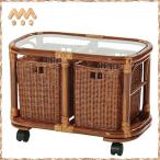 小回りが効くコンパクトサイズのラタン製ミニテーブル。 落ち着いた色合いで和洋問わずお部屋になじみ易いデザインです。 小物収納に便利なバスケット2個付属。 キャスター付きなのでさっと移動できます。 ソファサイドやベッドサイドでちょっとしたテーブルとして便利にお使いいただけます。 天板がガラス製なので清涼感があります。 天然素材でゆったりとした優雅な時間を過ごせる空間を演出します。 ■サイズ:幅51×奥行き30×高さ37cm(約) バスケット内寸:幅16×奥行24×高さ22cm(約) ■カラー:ブラウン ■材質:籐、合板、ガラス、ラッカー塗装 ■生産国:インドネシア ■仕様:完成品 ※天然素材を使用している為、大きさ、色味に若干の個体差がございます。 ※仕様変更により若干画像と異なる場合があります。 ※サンフラワーラタン商品は他の商品とは同梱不可となります。