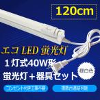 LED蛍光灯40W形 蛍光灯器具セット 40W型 1灯式 工事不要 軽量 工事不要で使用できるLED蛍光灯と器具のセットです。 コンセントケーブル付で簡単に使えます。 複数台を直線方向に連結可能。 ※取り付け方法 付属のクリップ式固定金具2個をネジ留め、本体を設置する 付属のコンセントケーブルを接続して本体の片側に差し込む ※注意点 電源は両側印加方式です。 弊社のグロー用LED蛍光灯はすべて使用できます。 他社のLED蛍光灯を使用する場合は方式を確認する必要があります。 サイズ:幅32mm、高さ50mm、長さ1250mm 重量:約140g 付属品:コンセントケーブル、固定金具2個、ネジ2個、連結アダプタ1個 口金:G13(蛍光灯タイプ) 電圧:100V,50/60Hz 消費電力:18W 全光束:2100LM サイズ:最大直径¢28、最大長さ1198mm 色温度:昼白色(5500K) 外観:乳白色カバー 照射角:300度 <発送について> ■宅配便:送料は全国一律¥800円(沖縄は+1000円) <保証について> 保証は初期不良対応のみとさせていただきます。