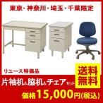 オフィスデスク 事務机 片袖机幅100cmとオフィスチェアがセットで 15,000円の超特価。 更に配送地域限定で、送料無料でお届けします。