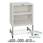 デスク下空間の有効活用に最適な、横幅400mmのアミ棚付デスクワゴン(デスクターナ)です。 書類やファイルの収納家具として、机やテーブルの下に格納して使える、頑丈なスチール製の収納庫となっております。 デスク周りための収納家具シリーズ「デスクターナ」で、机上に散らばりがちなファイルや小物類を収納することで、スッキリした快適なデスクワーク環境を実現しましょう。 取っ手等のプラスチック部品総重量の10%以上に、再生プラスチックを使用した、グリーン購入法適合商品です。