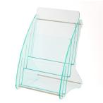 品名 卓上パンフレットスタンド 品番 004-120 送料無料 仕様 1.透明ガラス色側板5mm厚 2.透明ガラス色棚板3mm厚 3.組立式、ネジ止め 4.A4判パンフレット、1列2段収納 5.組立後の製品寸法W216xH315xD141 6.アクリル板のNCルータによる削り出し加工。 日本製 トライテックの卓上パンフレットスタンドの特徴 1.卓上A4パンフレット1列2段/3段2列2段/3段合計4種類あります。 2.カウンター、棚の上に置くタイプです。 3.透明ガラス色のアクリル板を採用していますので、高級感のあるデザインです。 4.3つ折りパンフレットはA4判1列2段なら1段に2列、2段並べられます。 5.パンフレットスタンドお客様ご使用例 ・カタログケース、カタログスタンドとして机上/デスクの上に置いています。 会議室や待合室やエントランス/ロビーに。 ・会社案内やPOP広告のラックとして店頭用に。 シンプルなデザインが良いです。 ・イベントや催事に会社案内のディスプレイとして使用しています。 高級感があるのでお客様の前に出しても全く問題ありません。 ・待合室に雑誌/マガジンを入れて設置しています。