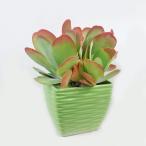フラップジャック(カランコエ・ファリナケア)陶器鉢、陶器鉢の一辺約16cm。 全高30cm弱。 ・ベンケイソウ科・カランコエ属の常緑多年草 ・学名:Kalanchoe farinacea ・アフリカ原産 ・葉っぱは肉厚で、寒い季節は葉の縁が鮮やかな赤色になります。 それが、焼き色が付いたフラップジャックを思い浮かべるとか。 ・Flapjackとは、オートミールを使ったイギリスの伝統的焼き菓子のことです。 ・水やり:乾燥に強いので、鉢土の表面が乾いてから与えます。 ・置き場:できるだけ日当たりのよい場所に置きます。 強い直射日光で葉が焼けることがあるので、真夏は明るい日陰で育てます。 高温多湿時期は蒸れないように風通しにも気をつけます。 ・肥料:新芽が動き出す5月頃〜秋まで、夏を除き、液体肥料を20日に1回与えます。 ・夏にはぐんぐん育つので、翌春に暖かくなったら一回り大きな鉢に植え替えます。 多肉・サボテン用の土に3割くらい、観葉の土か草花培養土を混ぜれば簡単です。 または、赤玉土(中〜小粒)5:ピートモス2:川砂3など水はけの良い土が必要です。 ・冬は寒さに弱いので屋外で育てている場合、室内に取り込みます |