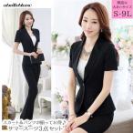 着回し抜群、ブラックスーツ。 着やせタイトシルエットのサマースーツです 知的上品に着こなせるベーシックなデザイン。 着やせに見せる半袖ジャケットとミニ丈のタイトスカート、 ロング丈の揃った美脚シルエットに見せるパンツのお得な3点セットです。 フォーマル、ビジネスに。 生地:ポリエステル95%スパンデックス5% 半袖ジャケット、スカート、パンツ3点セット カラー:ブラック サイズ:S/M/L/2L/3L/4L/5L/6L/7L/8L/9L サイズ詳細は画像をご確認ください。 |
