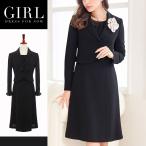 グログランテープがポイントの3点スーツ [7号 9号 11号 13号 15号](礼服・喪服)ジャケット&ブラウス&スカートの3点セット! 洗練されたシルエットが美しさをアピール!大きめのロールドカラーのジャケットと軽やかなフレアスカートの組合せが上品なスタイル! |