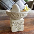 睡蓮鉢,フラワーベース,石彫り,置物,ストーン,彫刻,ガーデニング バリ島のリゾートホテルやスパで見かける、プルメリアデザインがかわいい石彫りの睡蓮鉢。 付属品の白い小石とプルメリアの造花を飾るだけで、一気にバリ気分です。 ちょっとしたお部屋のアクセントにおすすめ。 お皿サイズ:直径15cm×高さ5cm 台座サイズ:縦幅8cm×横幅8cm×高さ8cm 重量:約1.2kg 付属品・プルメリアスポンジフラワーLサイズ5個(色はおまかせとなります)/スノーストーン(真っ白な小石) 素材 パラス石(砂石) 生産国 インドネ シア バリ島 パラス石の特性 ・パラス石(砂石)は素材自体が軟らかく、石粉があります。 ・天然の石を使用していますので、部分的に茶色い着色や斑点、全体としては気にならない程度の小さな欠け・ヒビ・穴などが見られる場合もあります。 ・これらはパラス石の特性ですので、予めご了承ください。