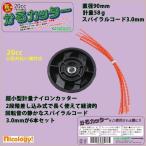商品名 かるカッター(ナイロンカッター20cc小型刈払機対応)<br> ナイロンカッター20cc小型刈払機対応<br> 直経90mm超軽量58gの小型軽量ナイロンカッター<br> 二段階差し込み式で長く使えて経済的<br> 回転音の静かなスパイラルコード3.0mm6本 <br> ※ナイロンカッター20cc小型刈払機対応を快適に使うためのご使用前に!! <br>1.ご使用に当たってはお手持ちの「刈払機の説明証』に従って作業をお願い致します。 <br>2.ストッパーのない市販コードをご利用の場合は、全長を42cm以下、太さを2.7mm以下にしてください。 <br> 3.底面に「◯又は?のマーク」が出たら、使用を中止して、新しい製品をご使用ください。 <br> |