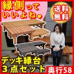 ウッドデッキよりくつろげて、縁台よりおしゃれ! ■庭やベランダでちょっとくつろぐ場所がほしい。 ■面倒な工事なしで、お安く手軽に縁台を設置したい。 ■ウッドデッキは大げさだが、よくあるベンチ風の縁台は小さすぎる。 ありそうでなかった「デッキ縁台」シリーズなら、そんな願いを叶えてくれます 家族がワイワイ集まって、アイスを食べたりビニールプールを置いたり…。 憩いの場になりそう♪ 「デッキ縁台」シリーズと組み合わせることで、 ウッドデッキ風の本格的な縁台を設置することもできます ※北海道・沖縄・離島は別途送料が必要となります。