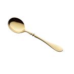 実用的で且つ装飾品のようなゴールド仕上のカトラリーは食卓を華やかに演出致します。 スープ用の皿が丸く大きいサイズの丸いスプーンです。