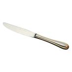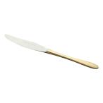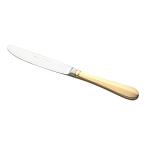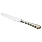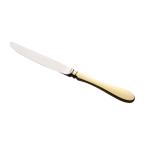 実用的で且つ装飾品のようなゴールド仕上のカトラリーは食卓を華やかに演出致します。 ステーキやハンバーグ等にディナーフォークとペアーでお使い下さい。 ハンドルが最中(中が空洞)で太くて軽く持ち易いナイフです。