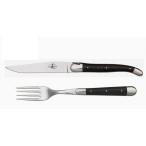 ライヨール社のテーブルナイフの刃はすべて鍛造されているので、切れ味良くステーキなどの肉類を切ることができます。 また、中ほどにふくらみをもたせたフォルムのハンドルは大変握り易く、適度な重量感が手の平にフィットします。 LAGUIOLE(ライヨール)について、19世紀初頭フランス南西部の小さな村で生まれ、現在もその小さな村で作られ続けているライヨール・ナイフ。 ブランドマークがその原産地がライヨール村であることを保証します。 クラフトマンシップに基づき、現在も一本のナイフの組立を一人の職人の手作業によって仕上げています。 使い勝手も考慮された、洗練されつつも温かみを感じるデザインとなっています。 ナイフ:全長23.5cm・刃渡り11cm、フォーク:全長20.5cm(個装サイズ:26×8×3cm)ナイフ:約105g、フォーク:約91g(個装重量:200g)ステンレス鋼/黒檀フランス ※手作りのため、材質などにより重量に多少の誤差があります。 ※天然の素材を使用しておりますので、お届けする商品により、模様や風合いに個体差がございます。 あらかじめご了承ください。