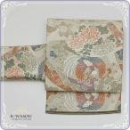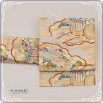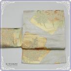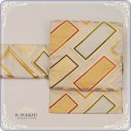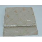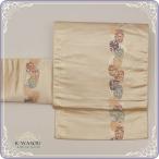 ○売価:¥4,320-(参考上代:¥62,640) ○素材:表/絹裏/絹 ○サイズ:約幅30cm×359cm ○カラー:地色/クリーム、柄/葉柄、織/塩瀬、染め/ろうけつ染 ○状態:シミや汚れがありますが、スレなどはなく着用に問題なくお召しになれます。