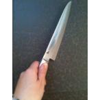 伊勢屋侍包丁(瀬戸嘉則氏プロデュース): 技術・信頼の証である世界最大のカスタムナイフメーカー組合THE KNIVES MAKER'S GUILD (USA) のメンバーであるYOSHIナイフ代表の瀬戸嘉則氏がプロデュースする包丁。 切れ味の良さは勿論であるが、仕上げの美しさは絶品である。 120m/m、ブレード材質:8A、ハンドル:黒合板 |