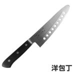 ■素材に最高の切れ味、モリブデンバナジウム鋼を使用した洋包丁です。 ■空気孔とリブが付いているので、切り離れ抜群です。 ■0、3mmの超薄刃造りなので、型崩れしやすいトマトや、海苔巻きにも! ■柄は丈夫な三本鋲、本通し造りです。 ■清潔さを考えたステンレス桂付き。 サイズ/刃渡り:約17cm全長:30cm内容量/1本材質/刃身:モリブデンバナジウム鋼ハンドル部:ポリアセタール生産国/中国製型番/F-2287[在庫商品][返品区分A]《洋包丁 穴明き包丁 調理器具 キッチンナイフ 薄刃包丁 洋庖丁 洋刃包丁 穴明包丁 食洗機対応 料理包丁 万能包丁 リブ付き 包丁 ほうちょう》