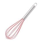 シリコーン製で使いやすい大きめサイズのウィスク 25cm ワイヤーにシリコーンを巻いたウィスクです。 金属製のボウルで泡立てても音が出ず、金属同士の接触による クリームの変色もありません。 型番:DL6267 材質:ラバー部=シリコーンゴム(耐熱温度210度)/その他=ステンレススチール 本体サイズ:267×67×67mm 重量:75g 食器洗浄機や食器乾燥器に対応している商品です。 生産国:中国 ※サイズ・重量は約の表示で誤差が生じる場合があります。