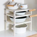 ■キッチンの流し台下の鍋やフライパンを取り出しやすく収納。 ■棚の高さが調節できます。 ■組立簡単、工具がいりません。 ■スペックデーター ■ サイズ:約 幅37×奥行30×高さ40(cm) 材質:脚部/ABS樹脂 棚板・メネジ/ポリプロピレン カラー:ホワイト 生産国:日本