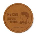 ポジティブなメッセージと共に理想的な家族像が焼印された 経年変化も楽しめるワックスコーティングレザー製コースター。 MADE IN JAPANにこだわり、海外ブランドのバイヤーも買い付けに 来られる工場に依頼し、素材から全ての行程を国内にて仕上げました。 天然素材独特の味のある風合いが感じられ、経年変化も楽しめます。 さり気なく飲み物とともにテーブルに置くだけで、おしゃれな 雰囲気にしてくれます。 Made in JAPAN TYPE:MY SON QUA.:Leather(天然皮革) ※天然素材のため、表面に若干のキズやシワ等がある場合があります。 WEIGHT:約12g SIZE:約直径10×H0.2cm |