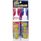 ■正味量: 緑青一発:120ml、艶ピカ一発:150g ■成分: 緑青一発:塩化水素、酸腐食抑制剤、艶ピカ一発:超微粒子研磨剤、艶出し剤、有機溶剤 ■溶液: 緑青一発:強酸性、艶ピカ一発:弱アルカリ性 ■用途: 銅・真鍮の緑青除去および艶出 成分「緑青一発」:塩化水素(8.2%)、酸腐食抑制剤「艶ピカ一発」:超微粒子研磨剤、艶出剤、有機溶剤液性緑青一発/強酸性、艶ピカ一発/弱アルカリ性容量緑青一発/120ml、艶ピカ一発/150g ■日本製