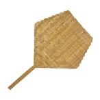 バンブーを薄く切って編み込んだナチュラルで昔ながらの団扇。 アジアンインテリアとして飾ってもGOOD! 昔からタイの一般家庭で使われている、五角形の団扇です。 とても軽く長時間使っていても手が疲れません。 ※手作りのため、商品により大きさが多少異なる場合が あります。 又、ゆがみ等が残る場合もあります。 予めご了承下さい。 ※竹のささくれが出ている場合がありますのでご注意下さい。 ■サイズ横幅約29cm縦(持ち手含む)約46cm |