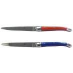 伝統的なライヨールナイフの形をそのまま生かしたエレガントで実用的なペーパーナイフです。 細身で薄めの刃はスムーズに紙を切ることができます。 柄の部分は着色された布をメラミン樹脂につけ込んで圧縮した「コンプレストファブリック」を使用。 耐久性にすぐれ、摩耗や変色をおこしにくくなっています。 従来のライヨールにはない斬新でカラフルなデザインをお楽しみください。 LAGUIOLE(ライヨール)について、19世紀初頭フランス南西部の小さな村で生まれ、現在もその小さな村で作られ続けているライヨール・ナイフ。 ブランドマークがその原産地がライヨール村であることを保証します。 クラフトマンシップに基づき、現在も一本のナイフの組立を一人の職人の手作業によって仕上げています。 使い勝手も考慮された、洗練されつつも温かみを感じるデザインとなっています。 全長19cm、刃渡り9.5cm(個装サイズ:24×4×3cm)約54g(個装重量:100g)刃:ステンレス鋼、ハンドル:コンプレストファブリック(コットン×メラミン樹脂)化粧箱入りフランス ※手作りのため、材質等により重量に多少の誤差があります。 あらかじめご了承ください。