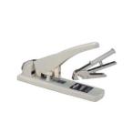 MAX大型ホッチキスHD-12N/24「マックスホッチキス」最強モデル50〜240枚とじ用・装てん中の針足の長さがひと目で確認できる大きな窓付(HD-12Nシリーズ共通)・ズレ防止のロック付奥行調整レバー(HD-12Nシリーズ共通) ■仕様:針装てん方法マガジンスライド方式針装てん数100とじ枚数(*)50〜110枚(1213FA-H使用時)110〜170枚(1217FA-H使用時)150〜200枚(1220FA-H使用時)200〜240枚(1224FA-H使用時)とじ奥行き68mm(最大)サイズH250xW90xL390(mm)質量2,260g*PPC用紙64g/m2(55kg)を綴じた場合の最大枚数の目安です。 紙種や綴じ方によって、綴じられる枚数が少なくなることがあります。