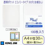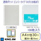 透明ポケットエコノミータイプ(A4サイズ30穴)台紙なし 品番 103EPP-100 サイズ 約)縦300×横230mm 入り数 100枚入り 仕様 A4サイズ(縦297×横210mm)30穴、台紙なしタイプ メーカー KING JIM株式会社キングジム たくさん使えるエコノミープライス!穴切れしにくいシール加工。 光の反射をおさえるノングレアタイプのポケット。 資料の両面が確認できる台紙なしタイプ。 |