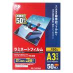 ■フィルム厚さは150ミクロンです。 ■A3サイズ(303×427mm) ■50枚入り ■材質:PP、EVA ※ 注意 ・インクジェット用紙で印刷したものをラミネートする場合には、半日から1日間放置し、十分に乾燥してから行って下さい。 ・使い方や機械操作を誤ったりした場合、気泡が入るなど、完全にラミネートできないことがあります。 ・高温・多湿な所や、直射日光が当たる場所での保管はお避けください。 ・ラミネートフィルムは1度だけしか使えません。 フィルムをはがしての再利用はできません。 ・金属・プラスチックや、表面に特殊なコーティングを施されたものはラミネートしないでください。 ・ラミネート前に、ラミネートフィルムをカットしたり変形しないでください。 ・熱で変形したり物性が変化するもの、感熱紙などはラミネートできません。 ※ 当製品は焼却しても「ダイオキシン」は発生しません。