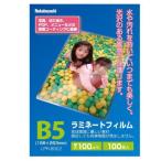■フィルム厚さは150ミクロンです。 ■B5サイズ(192×267mm) ■100枚入り ■材質:PP、EVA ※ 注意 ・インクジェット用紙で印刷したものをラミネートする場合には、半日から1日間放置し、十分に乾燥してから行って下さい。 ・使い方や機械操作を誤ったりした場合、気泡が入るなど、完全にラミネートできないことがあります。 ・高温・多湿な所や、直射日光が当たる場所での保管はお避けください。 ・ラミネートフィルムは1度だけしか使えません。 フィルムをはがしての再利用はできません。 ・金属・プラスチックや、表面に特殊なコーティングを施されたものはラミネートしないでください。 ・ラミネート前に、ラミネートフィルムをカットしたり変形しないでください。 ・熱で変形したり物性が変化するもの、感熱紙などはラミネートできません。 ※ 当製品は焼却しても「ダイオキシン」は発生しません。
