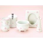 桜の柄が華やかな国産の仏具セットです。 色:全4色 サイズ 香炉:高さ5.2cm径7.2cm火立て:高さ3.6cm径5.4cm花立て:高さ9.3cm径4.1cm茶湯器:高さ4.3cm径4.4cm仏飯器:高さ3.6cm径4.8cm 材質:陶器 |