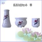 仏具3点セット(花柄入り) ・花立:高さ10.6cm ・湯呑:高さ5.4cm/直径4.9cm ・香炉(灰付):高さ5.6cm/直径7.7cm |