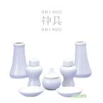 色:白サイズ:神具セット小平子・水玉・皿・榊立のセットです。 ■平子(酒壺):2.5寸約8cm御神酒を入れる器。 1対でお祀りします。 ■水玉:1.8寸約7cm御水をお祀りします。 ■皿:径約6.7cm塩・おさご(お米)をお祀りします。 ■榊立:高さ約:9.5cm榊を1対でお祀りします※写真と実際の商品では多少色合いなど異なる場合がございます |