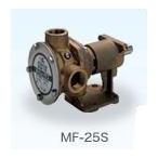 送料無料 ※北海道・沖縄・離島は、別途追加送料がかかる地域になります。 別途、お問合せください。 e-mail aqua@aqsys.co.jp まで 特徴 ■車輪部分もすべて砲金製になり、錆・汚れの心配は一切ありません。 ■呼び水不要で、瞬間的に自吸します。 ■インペラの取り外し、取り付けが簡単です。 ■インペラの向きを変えるだけで、左右いずれの回転も出来ます。 (但し、吐出・吸入の向きは逆になります。 ) ■MFは単体タイプ、MFC型は単体に電磁クラッチを付けたものです。 ■電磁クラッチ付は、ポンプの運転、停止がスイッチ一つで大変便利です。 仕様 ※エンジンをご使用される場合、MFCシリーズのクラッチ付エンジンをご使用ください。 機種:MF-25S 吸入・吐出口径:25mm(1") 最大吐出口径:115リットル/min 全揚程:28m 接続部ネジ:管用平行ネジ 材質:全砲金 所要動力:1.5kW(2.0PS)/1,750rpm 駆動方式:ベルト駆動 回転方向:(駆動軸側から見て)反時計方向 回転数:500〜2,300rpm 軸径:Φ20 重量(本体):4.8kg 標準付属品:平行キー 電磁クラッチ部仕様:電圧24V 容量:36W プーリー:Φ130 |