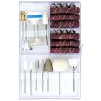 ■削る・切る・彫る・磨くなどのベーシック作業に便利です。 ■使用前に、商品に異常がないかを確認してください。 仕様 ■セット内容:ミニ回転ヤスリ×5種類、ダイヤモンドビット×10、金属砥石×5、フェルトバフ×4、金属ブラシ×3、ホイールブラシ×3、バフホイール×3、金属用切断砥石×15、石材用切断砥石×1、マンドレル×1、石材用砥石×5、ラバー砥石×6、ドラムセット、ミニフラップ×2、毛ブラシ×3、研磨バフ×2、ダイヤカッター×1、小径丸鋸×1、研磨剤×1、サンダーバンド×19 ■軸径:直径2.35mm ■用途:金属・非鉄金属・石材・ガラス・タイル・木材・貝・プラスチックなどの研磨・精密研磨・サビ落とし・ツヤ出し・穴あけ・切削・切断に ■仕様:ハードケース入り ※当店に在庫のない場合はお取り寄せのため納期にお時間がかかる場合があります。