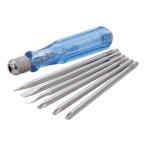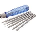 ドライバー 検電ドライバーセット 工具(SK11) 差替式検電ドライバーセット no.550lb(用途)/家庭用電化製品の検電・修理、一般家庭、工場での電線の検電。 (機能・特徴)/検電の際、ドライバーの柄部末端にあるネジを親指で押さえ、刃先をプラス側に接触させれば、柄の内部のネオン管が発光し、電気の導通の有無、異常がわかります。 オフセットドライバー付きです。 ドライバーとしてもご使用いただけます。 (仕様)/6本組。 (セット内容付属品)/-3.5・-5.5・角ギリ・+1・+2・オフセット+2×-5。 (商品サイズ)/幅65×高さ150×奥行25mm 重量200g (注意)/離島、一部地域、大型商品は別料金。