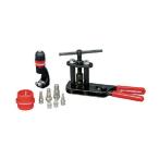 45°フレア、スウェイジング加工と切断、面取りができる便利なセット <特長> ■フレアコーンとスウェイジングセットの交換で、フレア加工とスウェイジング加工が1台でできます。 ■硬質銅管の加工もできます。 <仕様> フレアサイズ:3/16”〜5/8” セット内容:フレア本体、チューブカッタ28、リーマ、スウェイジングヘッド(3/16”・1/4”・5/16”....... |