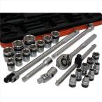 〜仕様〜 ・差込角:12.7mm(1/2) ・ポイント:6角 ・ボックスソケット(mm):18pcs 10、11、12、13、14、15、16、17、18、 19、20、21、22、23、24、27、30、32、 ・ラチェットハンドル×1(250mm) ・スライドTハンドル×1(250mm) ・フレックスハンドル×1(375mm) ・エクステンションバー×2(125・250mm) ・ユニバーサルジョイント×1(75mm) ・ケースサイズ:幅450×奥行195×高さ50mm ・セット重量:5.3kg ・本体材質:クロムバナジウム鋼 ・製造国:台湾 ・PL保険加入商品 ※商品改良の為、仕様・外観は予告なく変更する場合があります。
