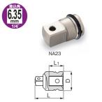 ■差込角の異なるソケットとレンチを接続するアタッチメントです。 ■外観品質と防錆力の向上を図った無電解めっき仕様。 仕様 ■差込角(mm):6.35 凹× 9.5 凸 ■D(mm):13 ■L1(mm):9 ■L(mm):22 ■質量(g):15 ※当店に在庫のない場合はお取り寄せのため納期にお時間がかかる場合があります。