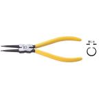 特長 ■1丁でシャフト(軸)とホール(穴)用スナップリングに兼用出来ます ■機能の切替は穴の位置を変えるだけで簡単に操作出来ます ■軽量・コンパクトで工具箱の中でも邪魔になりません ■丈夫な硬質ビニールグリップ付き 用途 ■各種スナップリング脱着作業に最適です 注意 ■無理な使用をしますと、折れたり、曲ったりすることがありますのでご注意下さい ■錆付いたスナップリングの取り外しには使用しないで下さい ■使用の際は、使用範囲内で保護メガネを着用して使用して下さい ■硬質グリップは絶縁ではありません ■工具の使用目的以外に使用しないで下さい ※お取り寄せ商品のため納期にお時間がかかる場合があります。