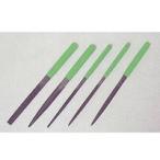 刃物、超硬チップ、ガラスの研磨に最適。 ダイヤモンドを特殊な加工で鋼材に付着させたものです。 超硬、焼入れ材、陶器などの硬い材料の切削、研磨に適しています。 用途:超硬(ドリル、バイト、エンドミル他)、焼入れ品(鋏、ペンチ、鎌、包丁、金型等)、陶器類(ガラス、セラミック他) 形状:平・半丸・丸 粒度:#200 全長:140mm ダイヤ長:60mm 入数:3本(平・半丸・丸各1本) 使用方法:軽くおしあてて、水かオイルでダイヤモンドヤスリを軽く濡らして使用してください。
